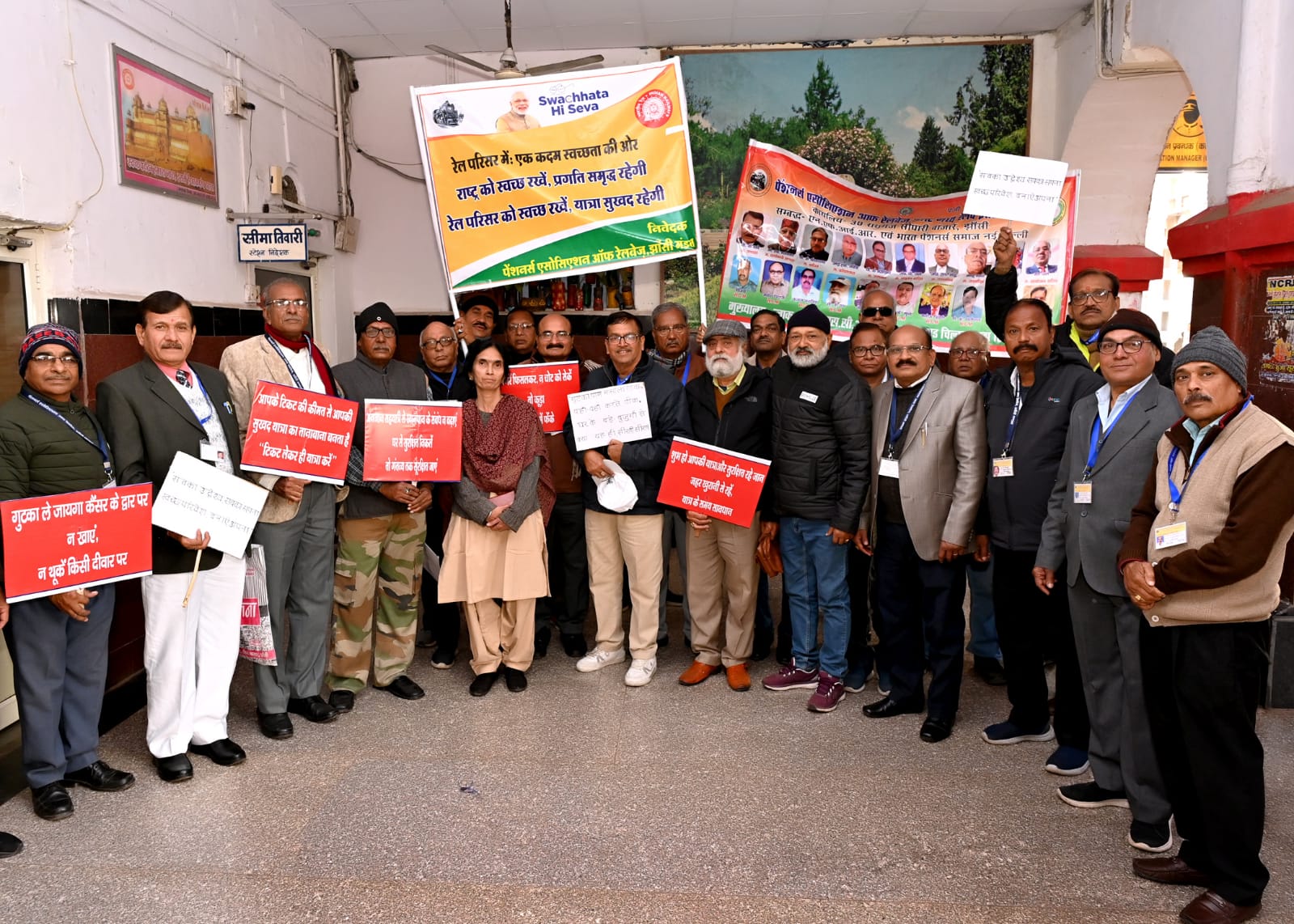 मंडल रेल प्रबंधक दीपक कुमार सिन्हा के मार्गदर्शन में पेंशनर्स एसोसिएशन ऑफ रेलवेज झांसी मंडल के सभी सदस्यों द्वारा स्टेशन डायरेक्टर कुमारी सीमा तिवारी के नेतृत्व में वीरांगना लक्ष्मी बाई झांसी स्टेशन पर स्वच्छता जागरूकता अभियान चलाया गया। जिसमें विभिन्न सफाई के स्लोगन के पोस्टरो एवं व्यक्तिगत तौर से रेलवे स्टेशन के उपयोगकर्ता / उपस्थित यात्रियों को साफ-सफाई के प्रति जागरूक किया गया I प्रदर्शन के दौरान बताया गया कि साफ सफाई से स्वास्थ्य पर क्या असर पड़ता है, और समाज में क्यों जरूरी है? के लिए संकेतआत्मक जागरूकता अभियान चलाया गया एवं प्रकाश डाला गया । इस अवसर पर झांसी स्टेशन के परिक्षेत्र में ऑटो रिक्शा चालको द्वारा अपना पूर्ण सहयोग प्रदान किया गया। और आश्वासन दिया कि यात्री यदि स्टेशन परिक्षेत्र में यात्री गंदगी फैलते हुए पाए जाएंगे तो हम लोग भी उनको रोकेंगे व स्वच्छता बनाए रखने में अपना पूर्ण सहयोग देंगे। इस अवसर पर वी के खरे अध्यक्ष, पी के श्रीवास्तव मण्डल सचिव, आई एस अरोरा मंडल कोषाध्यक्ष, ओ एस भटनागर कार्यकारिणी अध्यक्ष, मन्नू खान सह सचिव, आर के देवगैया आयोजन सचिव, आर पी पाल ज्वाइंट सचिव, आर एल साहू सह सचिव, सी बी राय, एन के सिंग, आर के थापक, ए के गुप्ता, शेखी राम, वीर सिंह, राकेश त्रिपाठी, एम एल मिश्रा, राम बाबू त्रिपाठी, डी पी मालवीय, एस के शर्मा आदि उपस्थिति रहे।