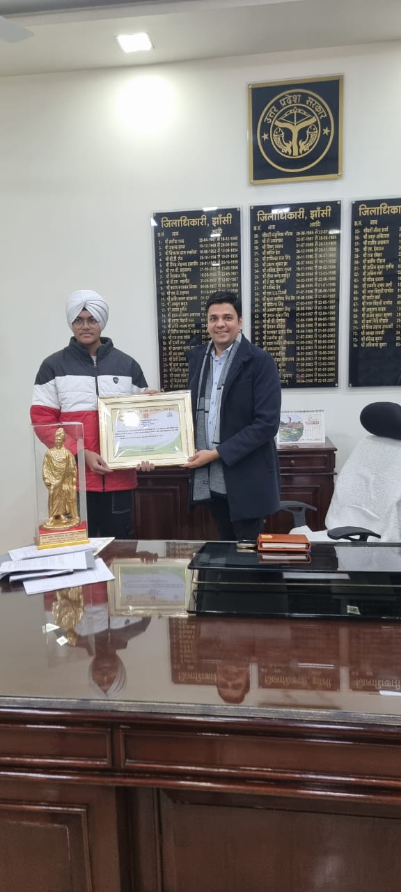 ** मुख्यमंत्री जी द्वारा “विवेकानन्द यूथ अवाॅर्ड” से सम्मानित होकर लौटे अर्शप्रीत को जिलाधिकारी ने दी बधाई