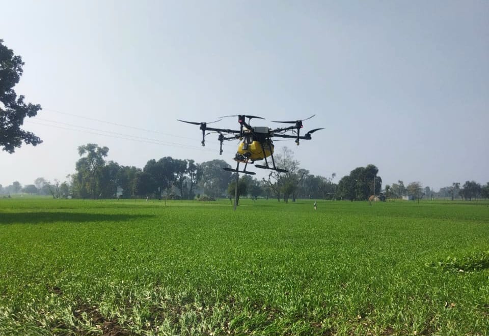 एक नई पहल” ड्रोन के माध्यम से किया फ़सल पर यूरिया का छिड़काव