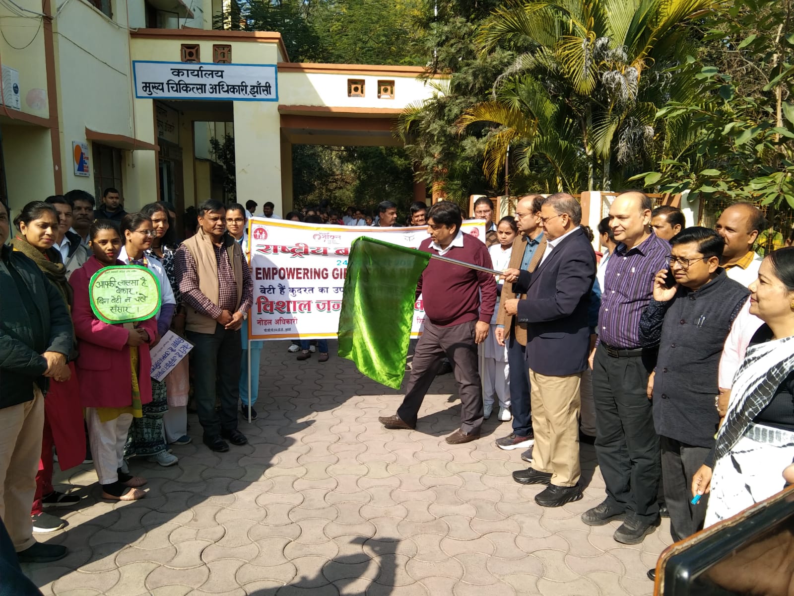 झांसी : जनपद झांसी में राष्ट्रीय बालिका दिवस के अवसर पर स्वास्थ्य विभाग द्वारा मुख्य चिकित्सा अधिकारी झांसी डॉ सुधाकर पांडेय के नेतृत्व में जन-जागरूकता रैली के माध्यम से महिला सशक्तिकरण एवं लैंगिक असमानता के विषय पर समाज को जागरूक किया गया।