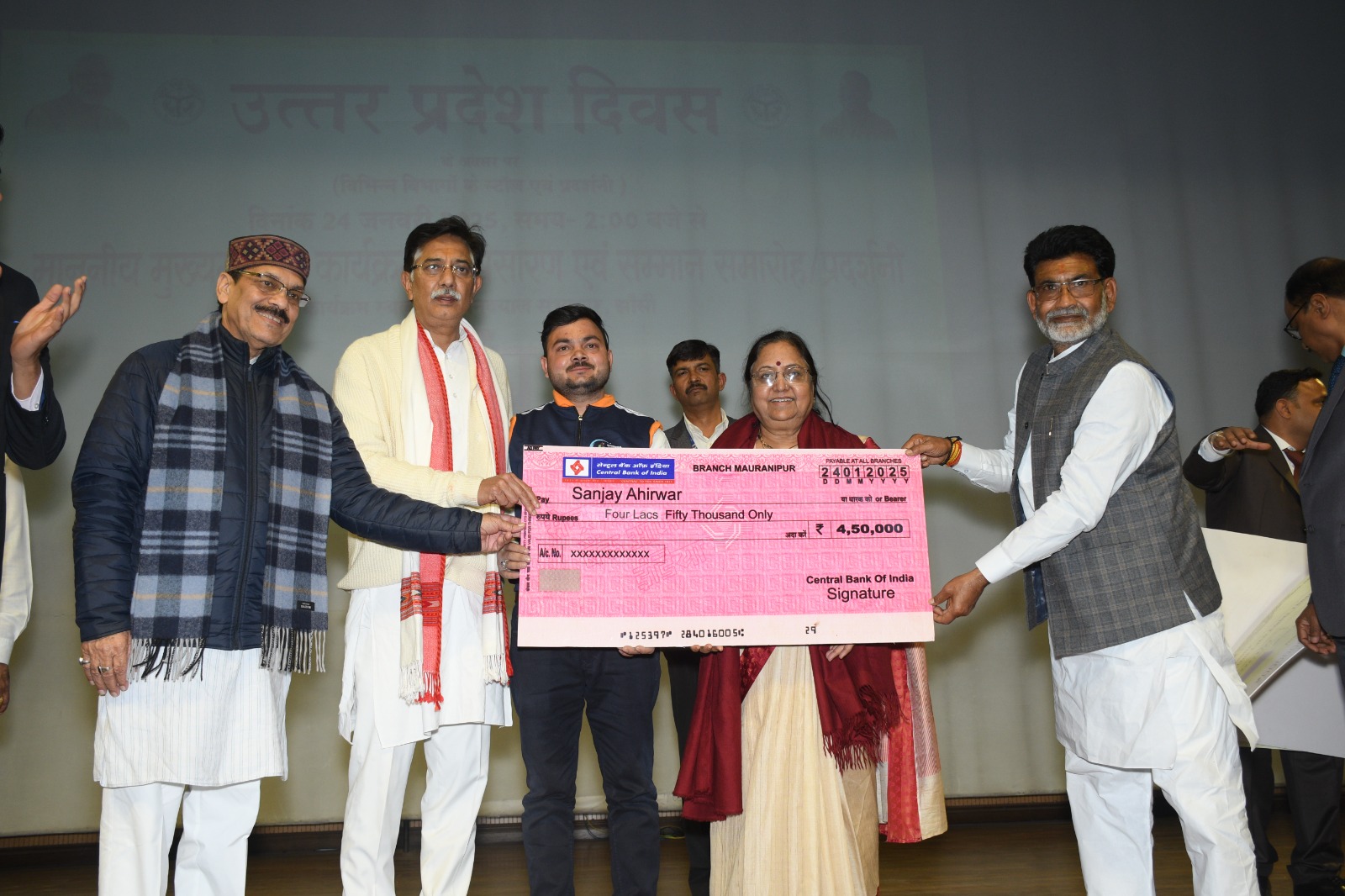 झांसी : आज प्रभारी मंत्री, महिला कल्याण, बाल विकास एवं पुष्टाहार, उ0प्र0 शासन श्रीमती बेबी रानी मौर्य जी के मुख्य आतिथ्य में “उत्तर प्रदेश दिवस” के अवसर पर “सम्मान समारोह एवं सांस्कृतिक कार्यक्रम” का आयोजन पं0 दीनदयाल सभागार में किया गया। इस अवसर पर सांसद झांसी-ललितपुर लोकसभा क्षेत्र अनुराग शर्मा, शिक्षक विधायक डाॅ0 बाबूलाल तिवारी, सदस्य विधान परिषद रामतीर्थ सिंघल एवं महानगर अध्यक्ष हेमंत परिहार गणमान्य अतिथि के रुप में उपस्थित रहे।