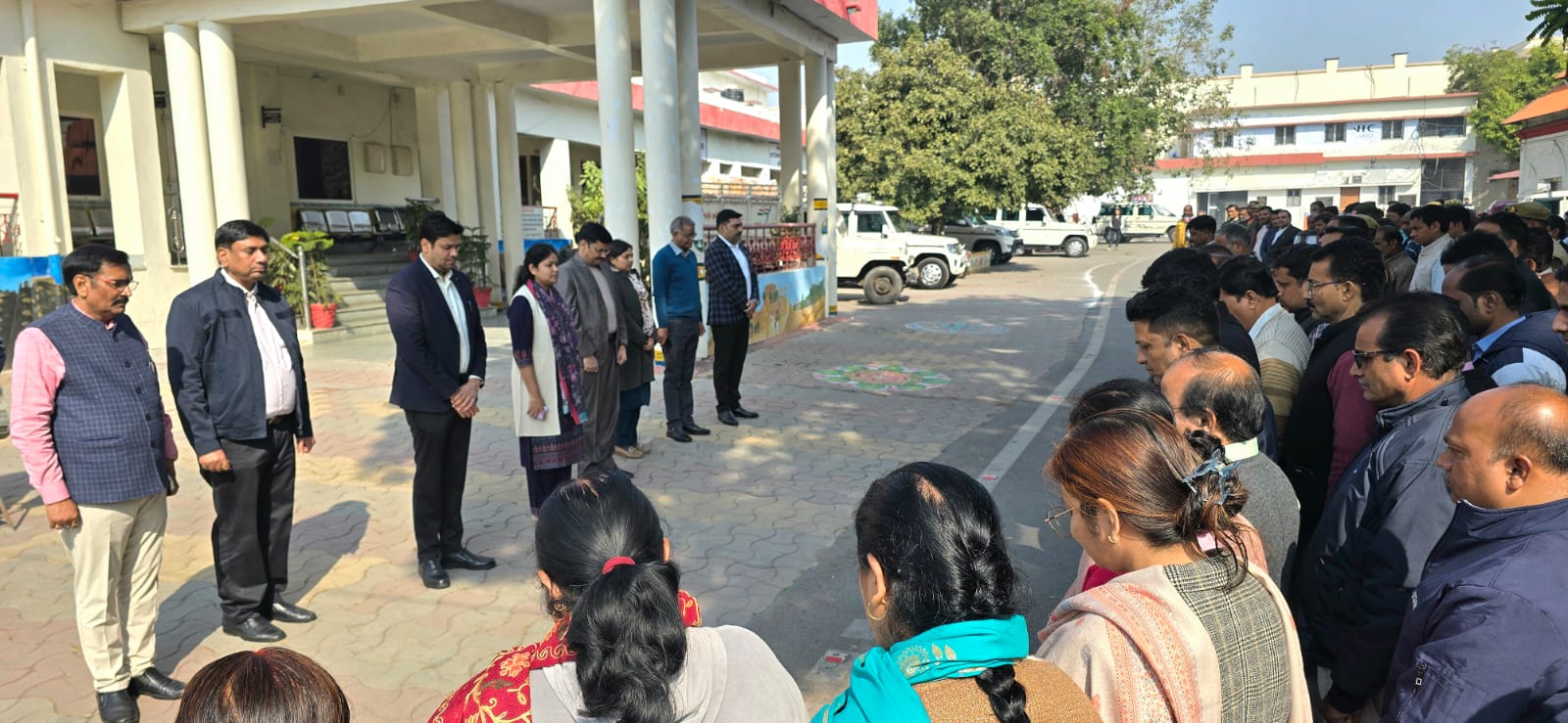 आहुति देने वाले शहीदों की स्मृति में 02 मिनट का मौन धारण कर सभी के प्रति श्रद्धांजलि अर्पित की गई।