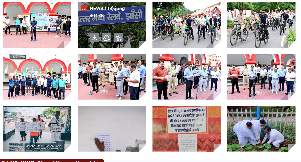 भारत सरकार के निर्देशों के अनुपालन में तथा मंडल रेल प्रबंधक श्री दीपक कुमार सिन्हा के मार्गदर्शन में, मंडल खेलकूद संघ एवं रेलवे सुरक्षा बल (आरपीएफ) झाँसी मंडल द्वारा आज दिनांक 13.08.2025 को “हर घर तिरंगा” मुहिम के अंतर्गत एक विशेष साइकिल एवं मोटर बाइक रैली का आयोजन किया गया। यह रैली मंडल रेल प्रबंधक कार्यालय से रेल सुरक्षा बल कार्यालय (पूर्व टी.ए. कार्यालय) तक आयोजित की गई, जिसका उद्देश्य राष्ट्रीय ध्वज के प्रति सम्मान, देशभक्ति की भावना को प्रगाढ़ करना तथा सशक्त राष्ट्र निर्माण में योगदान देना था।