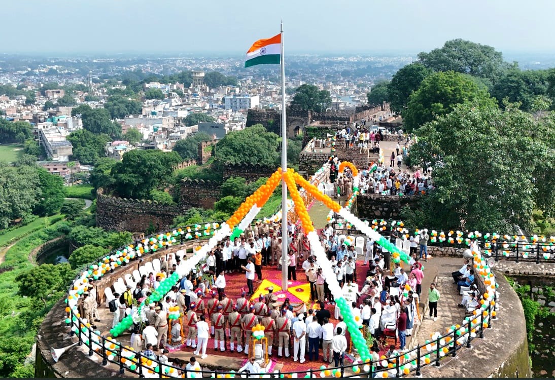 आज आजादी की 79 वीं वर्षगांठ के अवसर पर झॉसी के एतिहासिक किले पर किए जाने वाले झण्डारोहण की वर्षों पुरानी परम्परा को कायम रखते हुए जिलाधिकारी श्री मृदुल चौधरी द्वारा सपरिवार एवं स्वतंत्रता संग्राम सेनानियों के परिजनों सहित झण्डारोहण किया एवं किले की प्राचीर से उन सभी स्वतंत्रता सैनानियों को याद करते हुए नमन किया गया, जिन्होंने भारत के स्वतंत्रता संग्राम में योगदान दिया।