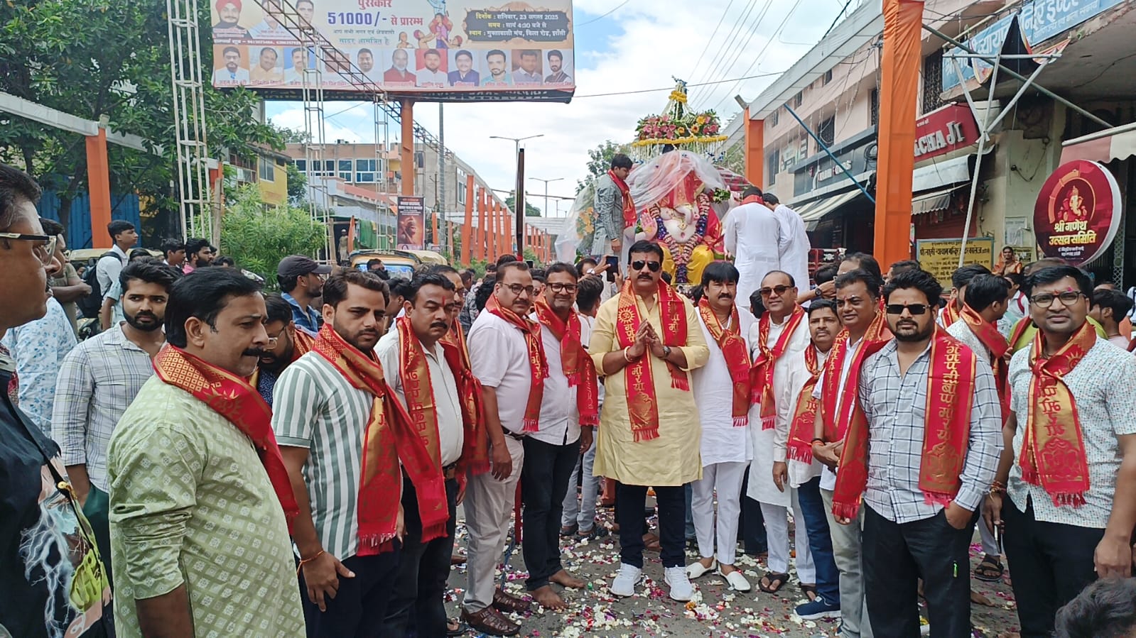 गणपति आगमन पर निकाली गयी भव्य शोभायात्रा, डॉ० संदीप हुए सम्मिलित