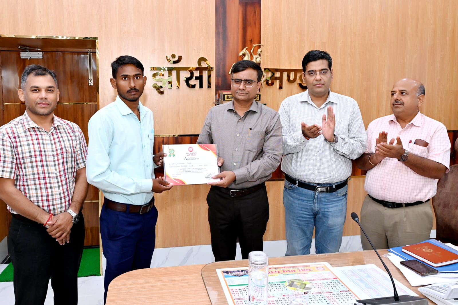 आज दिनांक 02.09.2025 को मंडल रेल प्रबंधक दीपक कुमार सिन्हा द्वारा खजुराहो में तैनात सिग्नल विभाग के सहायक को “एम्पलाई ऑफ द मंथ” सम्मान से सम्मानित किया गया। सुनील को जुलाई माह के सर्वश्रेष्ठ कर्मचारी के रूप में चयनित किया गया है। उन्हें सूझबूझ और असाधारण साहस का परिचय देने के लिए सम्मान दिया गया।