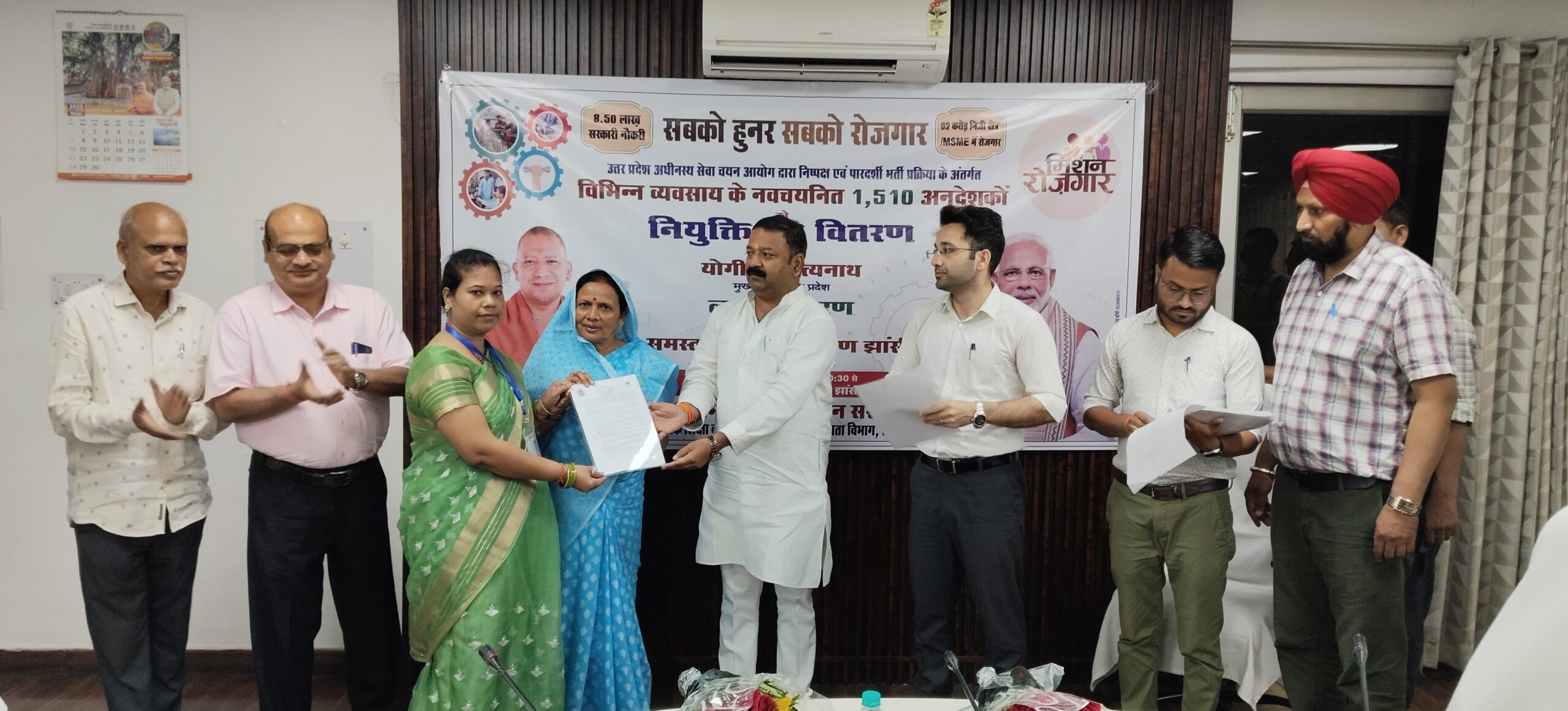झांसी । उत्तर प्रदेश अधीनस्थ सेवा चयन आयोग, लखनऊ द्वारा वर्ष 2025 में घोषित अंतिम परिणामों में विभिन्न व्यवसाय के लिए नव चयनित प्रदेश के 1,510 अनुदेशकों को नियुक्ति पत्र वितरण कार्यक्रम का शुभारम्भ मा० मुख्यमंत्री जी के कर कमलों द्वारा रविवार 07 सितंबर को पूर्वान्ह 10:30 से 11:30 बजे, लोक भवन स्थित ऑडिटोरियम में किया गया, जिसके क्रम में जनपद के 28 नवनियुक्त अनुदेशकों को मा. जिला पंचायत अध्यक्ष श्री पवन कुमार गौतम, मा0 एमएलसी श्रीमती रमा निरंजन एवं मुख्य विकास अधिकारी श्री जुनैद अहमद की गरिमामय उपस्थिति में विकास भवन सभागार में नियुक्ति पत्र वितरित किए गए। नियुक्ति पत्र पाकर नवनियुक्त अनुदेशकों के चेहरे खिल उठे और सभी ने अपने भाव प्रकट करते हुए निष्पक्ष और पारदर्शी भर्ती प्रक्रिया के लिए मा. मुख्यमंत्री जी का धन्यवाद दिया।