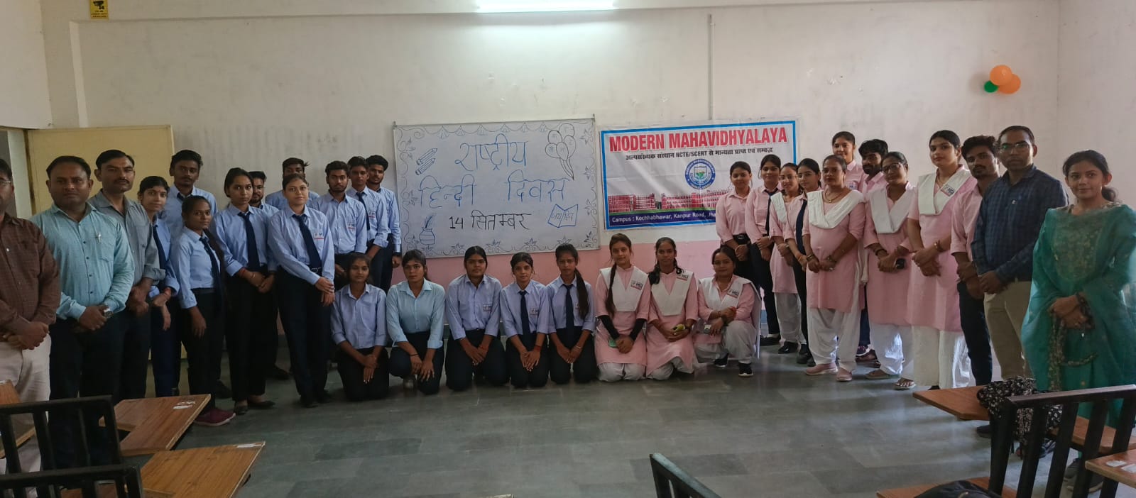 आम जनमानस में राजभाषा हिन्दी के प्रति रूचि एवं भाषा के संवर्धन के लिए भारत में प्रतिवर्ष 14 सितम्बर को राष्ट्रीय हिन्दी दिवस मनाया जाता हैं। इसीक्रम में मॉडर्न महाविद्यालय में राष्ट्रीय हिन्दी दिवस के उपलक्ष्य में एक कार्यक्रम आयोजित किया गया। कार्यक्रम में मॉडर्न महाविद्यालय प्रवक्ता श्री हर्षवर्धन द्वारा सम्पादित एस0सी0ई0आर0टी0 द्वारा अनुमोदित डी0एल0एड0 द्वितीय सेमेस्टर पाठ्यक्रम के लिये हिन्दी का कक्षा शिक्षण पुस्तक का विमोचन संस्था के प्रबन्ध निदेशक श्री अपूर्व शुक्ला के द्वारा किया गया। कार्यक्रम में डी0एल0एड0 के प्रशिक्षुओं ने बढ़चढ़कर हिस्सा लिया। राष्ट्रीय हिन्दी दिवस पर प्रशिक्षुओं ने अपने विचार, गीत, एवं कविताएं प्रस्तुत कीं। जिसमें प्रशिक्षु आशी दुबे, स्नेहा वर्मा एवं रूबी प्रजापति द्वारा प्रस्तुत की गयीं कविताओं को खूब सराहा गया। इस मौके पर मॉडर्न महाविद्यालय के प्राचार्य श्री नरेन्द्र कुमार त्रिपाठी ने सभी प्रशिक्षुओं को हिन्दी दिवस की शुभकामनाएं देते हुये हिन्दी भाषा के उद्भव एवं विकास के बारे में विस्तार से बताया। कार्यक्रम का संचालन करते हुये प्रवक्ता हृदयेश विश्वकर्मा ने हिन्दी दिवस मनाने के महत्व और आवश्यकता पर प्रकाश डाला। प्रवक्ता आशीष सोनी ने विचार व्यक्त करते हुये प्रशिक्षुओं को हिन्दी भाषा के प्रति रूचि रखने के लिए प्रेरित किया। वहीं मॉडर्न कॉलेज की प्रवक्ता निधि श्रीवास्तव ने कहा कि सभी को हिन्दी के प्रति सम्मान रखना चाहिए।