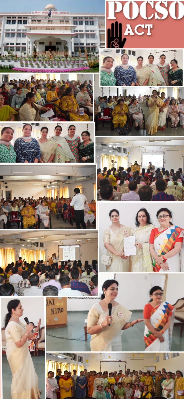 मुख्यालय झांसी उप्र सामाजिक संस्था नव- प्रभात की महिला प्रकोष्ठ कृति अनुशासन निगरानी कमेटी वरिष्ठ जनों के दिशा निर्देश अनुसार मिशन शक्ति फेस-5 के तहत संस्था प्रशिक्षकों द्वारा आर्मी पब्लिक स्कूल झांसी छावनी में अध्यापक अध्यापिका सजगता हेतु पॉक्सो एक्ट -2012 ( यौन अपराधों से बालक बालिकाओं का संरक्षण ) विषयक जन जागृति कार्यशाला का शुभारंभ सभी शिक्षार्थियों की सुरक्षा के प्रति सजग अध्यापक- सतर्क परिवेश – सुरक्षित बालहित” की नीति समझाते हुए अध्यनरत बालक बालिकाओं की सुरक्षा व संरक्षण हेतु प्रति पल सजग एवं सतर्क रहने के आह्वान के साथ किया गया पॉक्सो एक्ट जनजागृति कार्यशाला में विद्यालय प्रबंधन के लगभग 100 अध्यापक अध्यापिका उपस्थित रहे