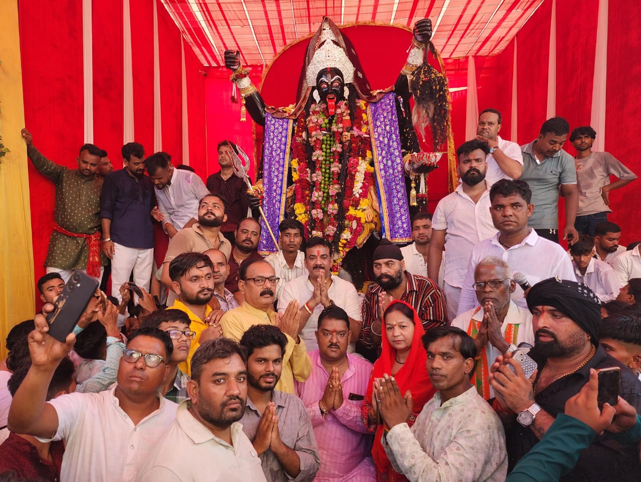 झाँसी। सोमवार को स्थानीय खटिकयाना क्षेत्र में काली जी के आगमन पर श्रद्धालुओं ने धार्मिक उल्लास के साथ स्वागत किया। इस अवसर पर संघर्ष सेवा समिति के संस्थापक डॉ० संदीप सरावगी ने पुष्पवर्षा कर मां काली का अभिवादन किया। समिति की ओर से भक्तों की सुविधा के लिए चाय व बिस्किट का निःशुल्क वितरण किया गया। पूरे कार्यक्रम के दौरान श्रद्धालुओं में गहरी आस्था और उत्साह देखने को मिला। इस अवसर पर डॉ० सरावगी ने कहा कि समिति का उद्देश्य समाजसेवा के साथ धार्मिक और सांस्कृतिक मूल्यों को बढ़ावा देना है। झाँसी के ऐतिहासिक खटिकयाना क्षेत्र में नवरात्र के अवसर पर विराजने वाली माँ काली श्रद्धालुओं की आस्था का प्रमुख केंद्र है। यहाँ की काली माता को क्षेत्रवासियों की आराध्य देवी माना जाता है। नवरात्र, महाअष्टमी व विशेष अवसरों पर यहाँ भव्य आयोजन होते हैं और दूर-दूर से श्रद्धालु दर्शन के लिए आते हैं। माँ काली के दर्शन मात्र से ही भक्तों को साहस, शक्ति व सकारात्मक ऊर्जा प्राप्त होने का विश्वास है। खटिकयाना की माँ काली की पूजा में सामाजिक सद्भाव और सेवा भावना का अद्भुत संगम देखने को मिलता है। कार्यक्रम में पियूष रावत, सरदार वीर सिंह (पूर्व पार्षद), प्रदीप नगरिया (पूर्व पार्षद), दीनदयाल चौरसिया, अभिषेक साहू, कमलेश रायकवार, बंटी सोनी, सरिता सिंह, रश्मि हयारन, निशा चतुर्वेदी, चंदन खटीक, पप्पू खटीक, भाईयन गुप्ता, मुन्नालाल शर्मा, महेंद्र शर्मा, रामकुमार प्रजापति, सुशील कुमार गुप्ता, रविंद्र यादव, कुलदीप तिवारी, सागर, साकेत, सुनील कुमार(भोजला), पराग गुप्ता, राधा सोनी, भगवान देवी, सिद्धांत गुप्ता, सोनू कुशवाह, आशीष विश्वकर्मा, अनुज प्रताप सिंह, संदीप नामदेव, बसंत गुप्ता, सूरज वर्मा, राजू सेन, सुशांत गुप्ता,सहित क्षेत्र के गणमान्य नागरिक, समिति के पदाधिकारी व बड़ी संख्या में श्रद्धालु उपस्थित रहे।