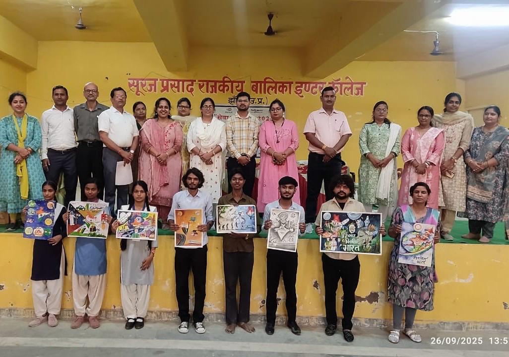 झांसी : आज विकसित भारत, आत्मनिर्भर भारत एवं डिजिटल भारत की संकल्पना को साकार बनाने हेतु सूरज प्रसाद बालिका इण्टर कॉलेज में जनपद स्तरीय चित्रकला प्रतियोगिता का आयोजन किया गया, जिसमें झाँसी जनपद के चित्रकार एवं कला प्रेमियों ने प्रतिभाग किया ।
