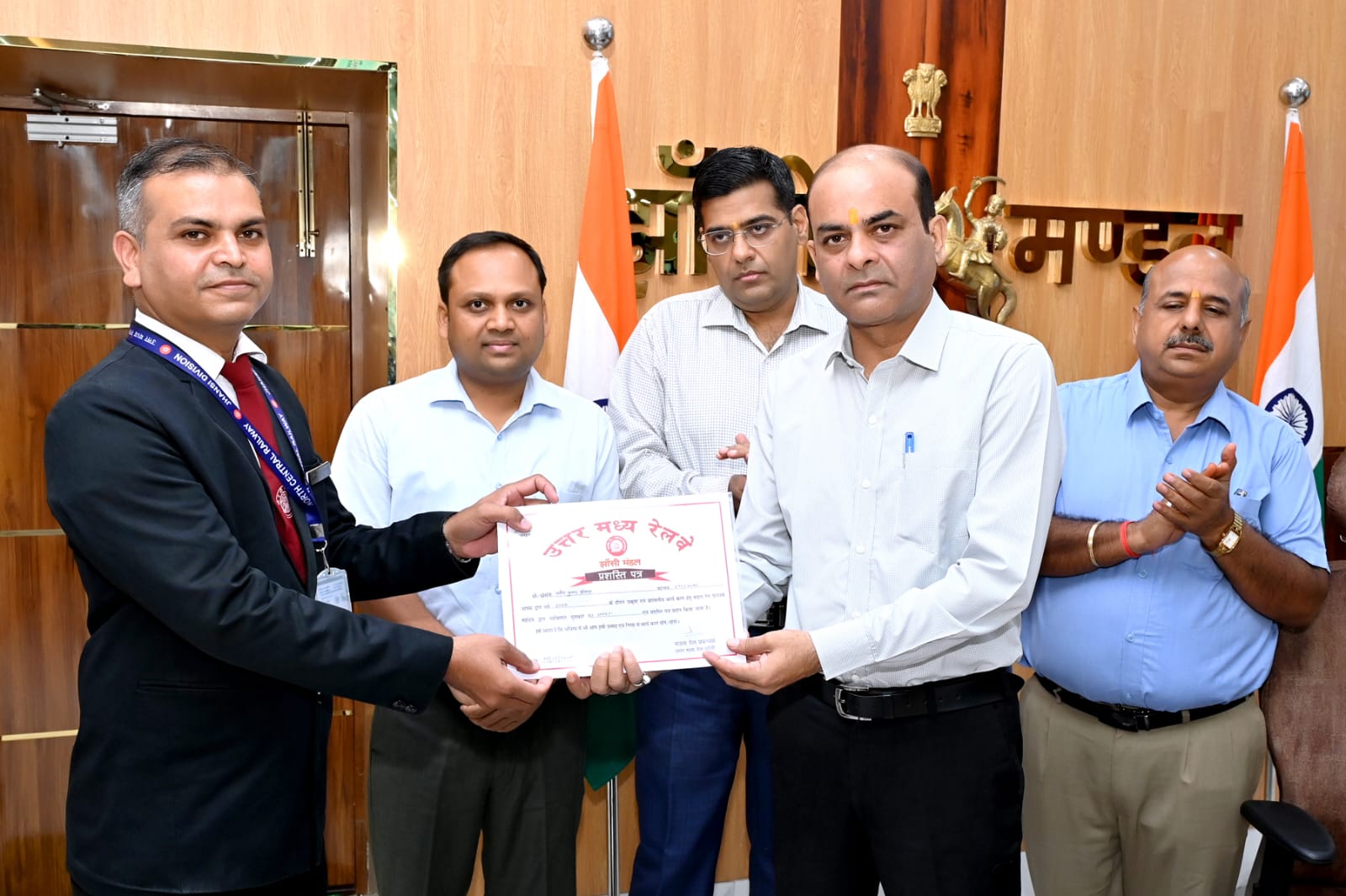 आज दिनांक 29.09.2025 को मंडल रेल प्रबंधक श्री अनिरुद्ध कुमार द्वारा झाँसी मंडल पर कार्यरत कर्मचारियों को सितम्बर माह के दौरान उनके सतर्कता पूर्वक उत्कृष्ट कार्य हेतु संरक्षा पुरस्कार प्रदान किया गया।