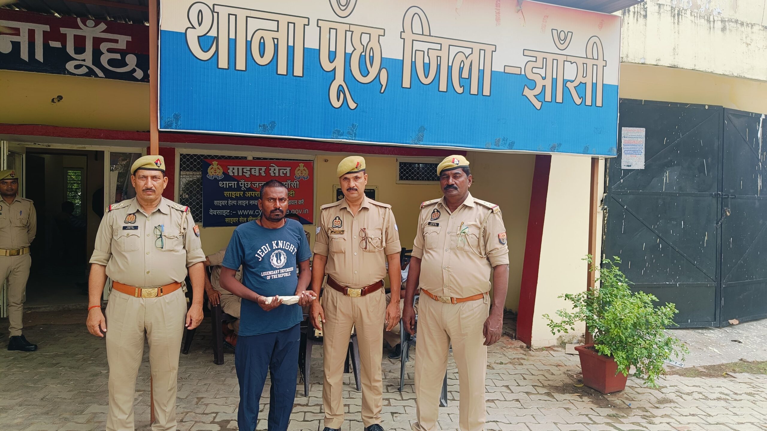 पुलिस अधीक्षक ग्रामीण डॉ. अरविंद कुमार और क्षेत्राधिकारी अजय कुमार क्षोत्रीय के मार्गदर्शन में प्रभारी निरीक्षक पूँछ जे.पी. की टीम ने यह कार्रवाई की। अभियुक्त अशोक कुमार (40 वर्ष), पुत्र स्व0 गोपी, ग्राम चितगुवा, थाना पूँछ, जनपद झाँसी, को बाईपास पर बने प्रतीक्षालय से पकड़ा गया।