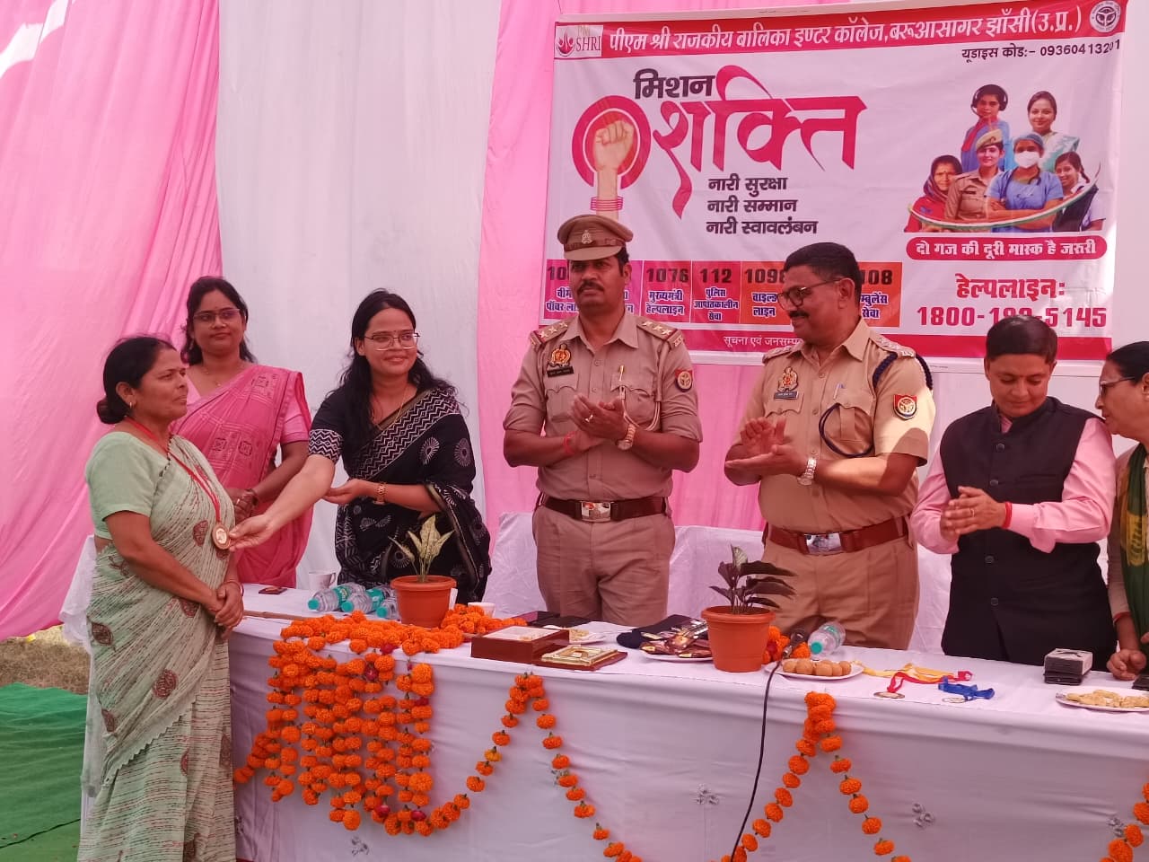 उत्तर प्रदेश सरकार द्वारा महिलाओं की सुरक्षा सम्मान व सशक्तिकरण के लिए मिशन शक्ति फेज 5.0 अभियान का आगाज हो चुका है इस अभियान का उद्देश्य महिलाओं को उनके अधिकारों के प्रति जागरूक करना उन्हें आत्मनिर्भर बनाना और समाज में समान भागीदारी सुनिश्चित करना है मिशन शक्ति अभियान फेज 5.0 के अंतर्गत वरिष्ठ पुलिस अधीक्षक झांसी बीबीजीटीएस मूर्ति के दिशा निर्देशन में आज बरुआसागर झांसी के पीएम श्री राजकीय बालिका इंटर कॉलेज में क्षेत्राधिकारी टहरौली अरुण राय के मुख्य आतिथ्य व एस एच ओ बरुआसागर मुकेश कुमार सोलंकी के विशिष्ट आतिथ्य तथा कॉलेज की प्राचार्य मानसी आर्य की अध्यक्षता एवं यातायात पुलिस में ट्रैफिक चीफ वार्डन प्रगति शर्मा के संयोजन में किया गया इसमें मुख्य अतिथि क्षेत्राधिकारी टहरौली ने उत्तर प्रदेश सरकार द्वारा प्रदत्त महिलाओं से संबंधित विभिन्न सरकारी योजनाओं हेल्पलाइन नंबरों जैसे 181 ,1090 ,112, 1076 ,1098, 108 ,181, 1930 आदि के बारे में विस्तृत रूप से जानकारी दी। कार्यक्रम संयोजिका कुमारी प्रगति शर्मा द्वारा विद्यालय की मेधावी छात्राओं अंजनी , मंशा, रेशमा मोहिनी भावना को मुख्य अतिथि के कर कमलो द्वारा मेडल पहनाकर सम्मानित करवाया गया तत्पश्चात आए हुए अतिथियों का स्वागत कार्यक्रम संयोजिका कुमारी प्रगति शर्मा द्वारा स्मृति चिन्ह भेट कर किया गया। उक्त अवसर पर ट्रैफिक वार्डन दीपशिखा शर्मा, विद्यालय से श्रीमती रश्मि बिजनौरिया, रजनी वर्मा शैली शुक्ला मंजू भारतीय नीरज मिश्रा उमा मिश्रा प्रियंका साहू एवं विद्यालय की सैकड़ो छात्राएं उपस्थित रही कार्यक्रम का संचालन शिक्षिका शैली मिश्रा द्वारा किया गया एवं आभार विद्यालय की प्रधानाचार्य मानसी आर्य ने व्यक्त किया।