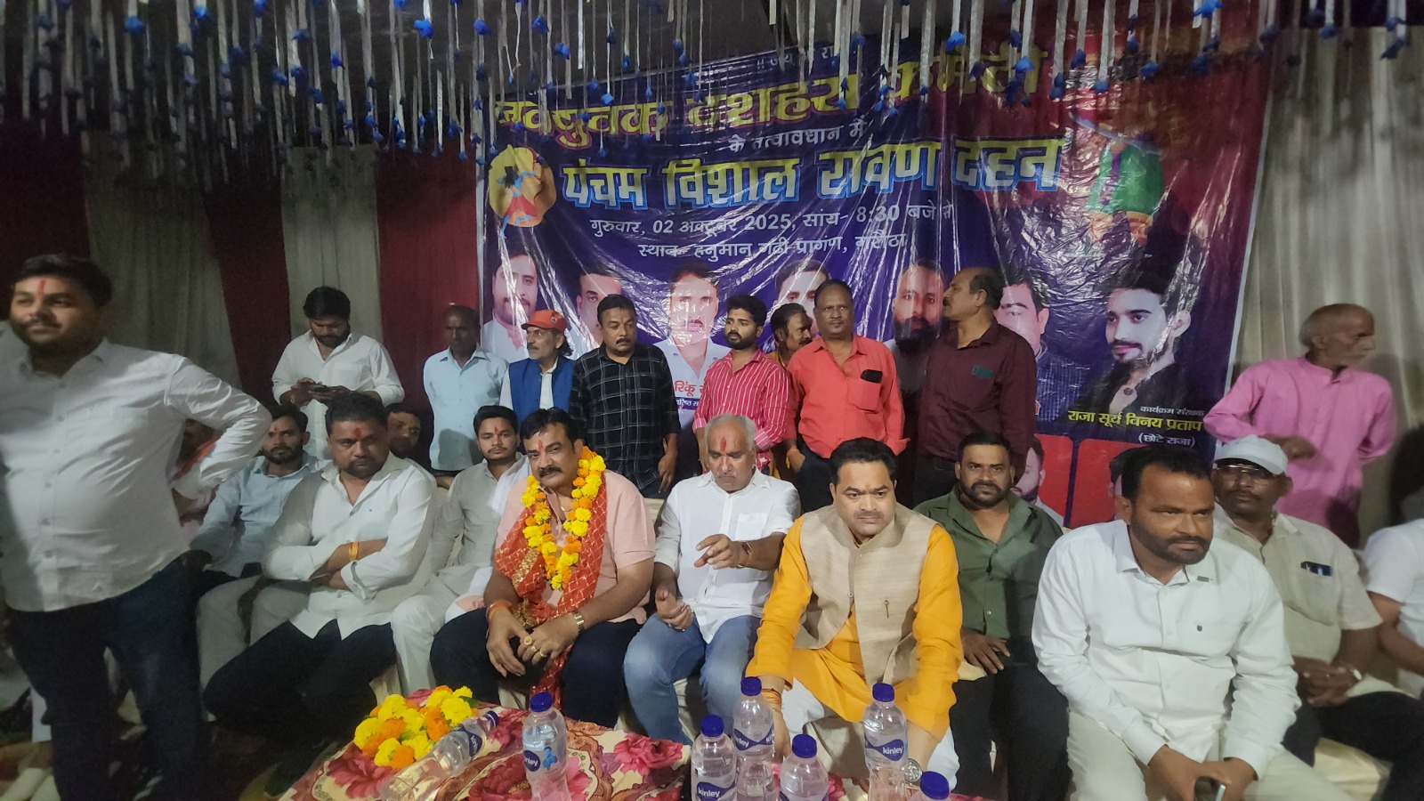 कार्यक्रम में रामचंद्र जी की आरती के बाद मर्यादा पुरुषोत्तम भगवान श्रीराम ने रावण दहन किया। पूरे प्रांगण में ‘जय श्रीराम’ के जयघोष गूंज उठे और वातावरण भक्तिमय हो गया। मुख्य अतिथि डॉ. संदीप सरावगी ने अपने संबोधन में कहा कि रावण दहन केवल एक परंपरा नहीं है, बल्कि यह हमें सदैव यह संदेश देता है कि असत्य पर सत्य की और अधर्म पर धर्म की जीत निश्चित है। समाज तभी प्रगति करेगा जब हम अपने भीतर के अहंकार, ईर्ष्या और बुराइयों का दहन करेंगे। उन्होंने कहा कि संघर्ष सेवा समिति सदैव समाज और संस्कृति की रक्षा के लिए प्रतिबद्ध है। टीम छोटे राजा नवयुवक दशहरा कमेटी के सदस्य कुंवर नगेंन्द्र प्रताप सिंह, भारत सिंह परिहार, सोनू विश्वकर्मा, आनंद वाल्मीकि, रुद्र प्रताप, बीके वर्मा, आकाश जायसवाल, आनंद यादव, लोकेन्द्र यादव, सुशांत शर्मा, नितिन चौरसिया, रामू सेंगर, अनुराग परिहार, विवेक परिहार, जीतू सोनी, यासीन पठान, अजय सोनी, गौरी शंकर आदि ने कार्यक्रम को सफल बनाने में महत्वपूर्ण भूमिका निभाई। इस अवसर पर संघर्ष सेवा समिति से रामबरन सिंह गौर, प्रसिद्ध यादव, राहुल केरोखर, सोनू ठाकुर, संदीप नामदेव, रतिराम यादव, भूपेंद्र यादव, अभिषेक यादव, महेंद्र रायकवार, मुन्नालाल मास्टर, निखिल गुप्ता, अनुज प्रताप सिंह, रामवतार राय सहित अनेक कार्यकर्ता उपस्थित रहे।