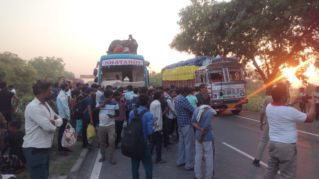 “झाँसी के पूँछ थाना क्षेत्र से बड़ी खबर सामने आ रही है। नेशनल हाईवे-27 पर सूरत से कानपुर जा रही शताब्दी बस एक कंटेनर से जा टकराई। हादसे में कई यात्री घायल हो गए और मौके पर अफरातफरी मच गई। यात्रियों ने बस चालक पर शराब के नशे में गाड़ी चलाने का गंभीर आरोप लगाया है।”