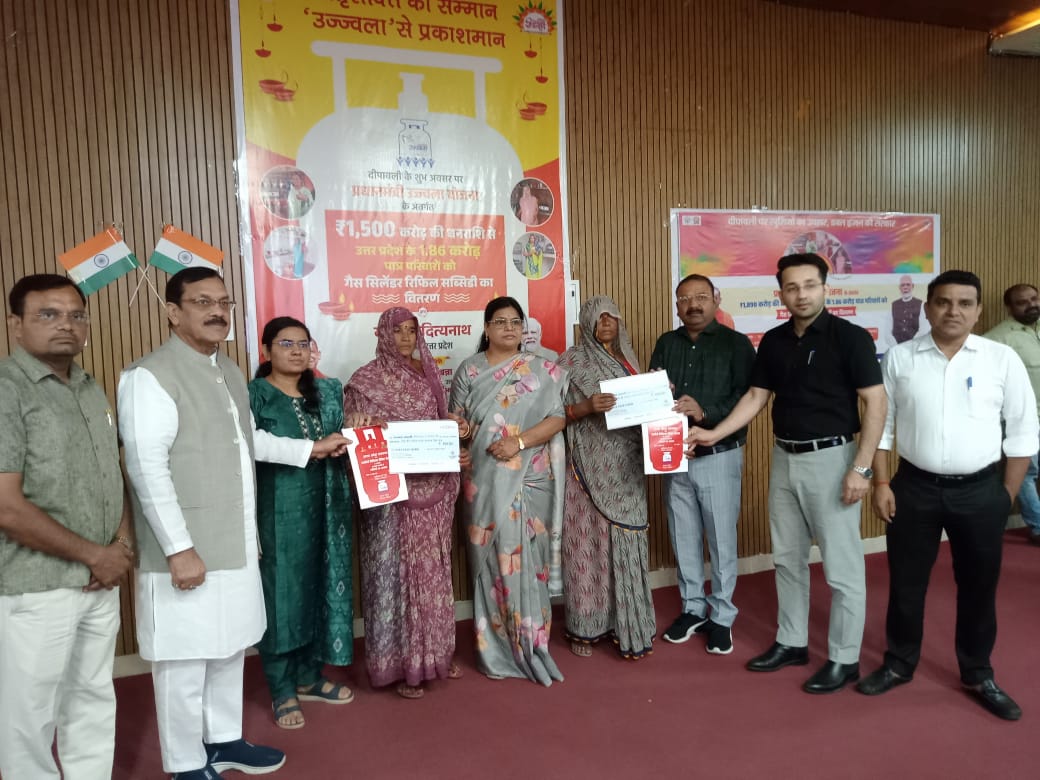 दीपावली के पावन अवसर पर मा0 मुख्यमंत्री श्री योगी आदित्यनाथ जी ने लखनऊ स्थित लोक भवन सभागार से ₹1,500 करोड़ की धनराशि से उत्तर प्रदेश के 1.86 करोड़ पात्र परिवारों को गैस सिलेंडर रिफिल सब्सिडी वितरण अभियान का शुभारंभ किया।