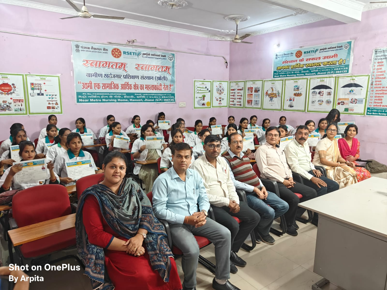 प्रशिक्षण कार्यक्रम के समापन अवसर पर मुख्य अतिथि के रूप में अग्रणी जिला प्रबंधक झाँसी श्री अजय कुमार शर्मा ने कहा कि इस संसथान का उद्देश्य अधिक से अधिक युवाओ को प्रशिक्षण द्वारा लाभ पहुचाना है। उन्होंने प्रशिक्षणार्थियों का उत्साह बढ़ाते हुए कहा कि आप ऐसा प्रशिक्षण प्राप्त कर रहे है जिससे आप भविष्य में स्वयं का रोजगार खोल सकते है एवं बैंक से मुख्यमंत्री युवा उद्यमी योजना एवं मुद्रा योजना आदि से वित्तीय सहायता भी ले सकते है। तत्पश्चात मुख्य अतिथि द्वारा सभी सफल प्रशिक्षणार्थियों को प्रमाण पत्र का वितरण किया गया।