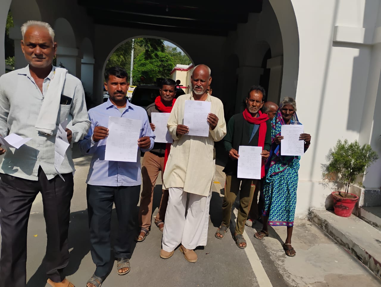जालौन जिला अधिकारी कार्यालय के बाहर ग्रामीणों की भीड़, हाथों में शिकायती पत्र