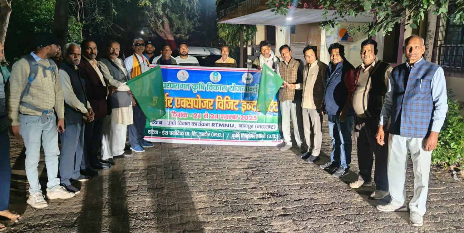 संयुक्त कृषि निदेशक श्री एल0 बी0 यादव ने 24 नवम्बर, 2025 तक राष्ट्रसन्त तुकडोजी महाराज नागपुर विश्वविद्यालय (RTMNU), नागपुर महाराष्ट्र आयोजित होने वाले एग्रो विजन कार्यक्रम में जनपद से जैविक/प्राकृतिक खेती के 10 अग्रणी कृषकों को कार्यक्रम में प्रतिभाग हेतु देर रात बस को झंडी दिखाकर रवाना किया।