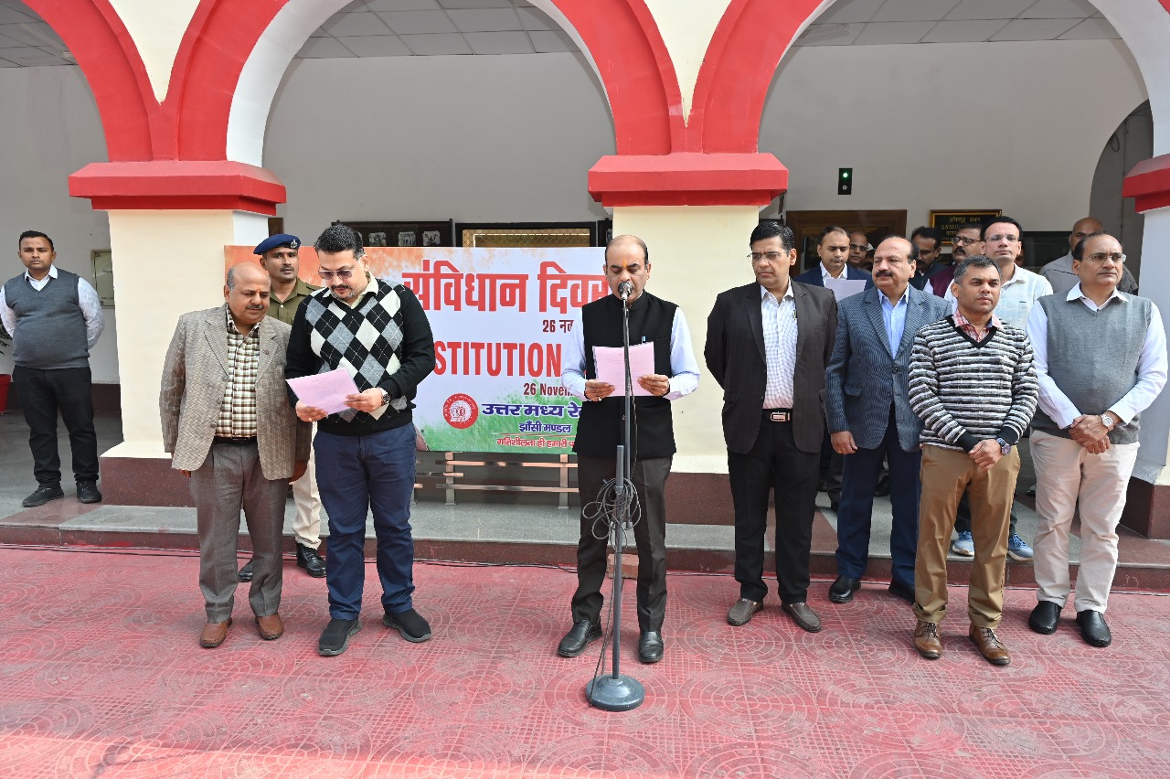 76वें राष्ट्रीय संविधान दिवस के उपलक्ष्य में झाँसी मंडल में एक गरिमामय कार्यक्रम का आयोजन किया गया। मंडल रेल प्रबंधक श्री अनिरुद्ध कुमार की अध्यक्षता में आयोजित इस कार्यक्रम में अधिकारियों एवं कर्मचारियों ने संविधान की प्रस्तावना का सामूहिक पाठ किया।