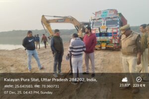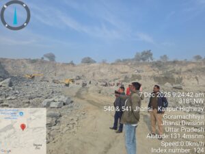 जिलाधिकारी के निर्देशानुसार जनपद-झॉसी में अवैध खनन/परिवहन पर प्रभावी कार्यवाही हेतु गठित तहसील स्तरीय टास्क फॉर्स टीम (राजस्व विभाग, पुलिस विभाग, वन विभाग एवं खनिज विभाग) द्वारा दिनांक 07 दिसम्बर 2025 को जनपद झांसी की तहसील-टहरौली स्थित ग्राम कुकरगांव में नदी तल में संचालित बालू/मोरम के खनन पट्टे का आकस्मिक निरीक्षण किया गया। प्रश्नगत क्षेत्र में खनन पट्टा क्षेत्र में मशीन द्वारा खनन कार्य करते पाये जाने पर सम्बन्धित पट्टाधारक के विरुद्ध नियमानुसार कार्यवाही की जा रही है।