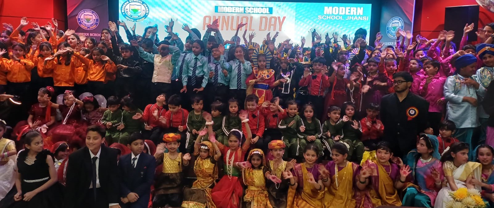 झाँसी के प्रतिष्ठित मॉडर्न स्कूल सिविल लाइन झाँसी में वार्षिकोत्सव स्पेक्ट्रा जूनियर विंग का आयोजन उत्साह एवं धूम-धाम से सम्पन्न हुआ वार्षिकोत्सव स्पेक्ट्रा मे मॉडर्न ग्रुप के बच्चों ने डांस विद म्यूजिक में अपनी प्रतिभा का प्रदर्शन किया इस दौरान बच्चों के द्वारा प्रस्तुत वेलकम टु द वर्ल्ड ऑफ ड्रीम्स, रिदम ऑफ द गार्डेन, द डेसर्ट क्वीन्स मीट द जंगल ट्राईब, एवेरी चाइल्ड कॉउंट्स, हौल्ली – बोल्ली फ्यूजन बीट्स, संस्कृति द डांस ऑफ कल्चर का प्रस्तुतीकरण किया गया जिस को काफी सराहा गया |
