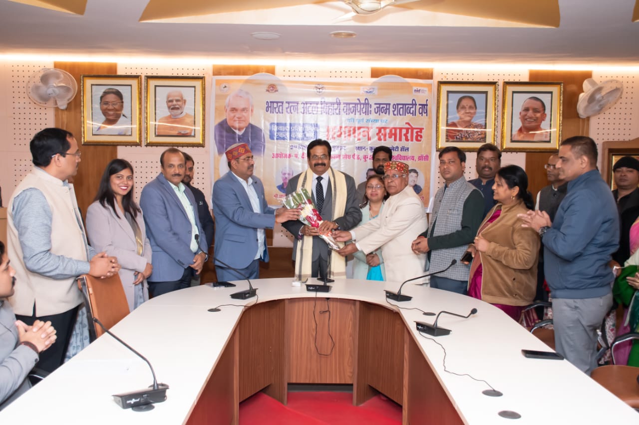 कार्यक्रम की अध्यक्षता कुलपति प्रो. मुकेश पांडेय ने की। अपने अध्यक्षीय उद्बोधन में उन्होंने कहा कि अटल बिहारी वाजपेयी का जीवन सार्वजनिक जीवन में शुचिता, संवाद और लोकतांत्रिक मर्यादाओं का आदर्श उदाहरण है। उन्होंने अटल जी की कविताओं का उल्लेख करते हुए कहा कि उनकी रचनाओं में राष्ट्रप्रेम, मानवीय संवेदना और आशावाद स्पष्ट रूप से झलकता है, जो आज के युवाओं के लिए प्रेरणास्रोत है।