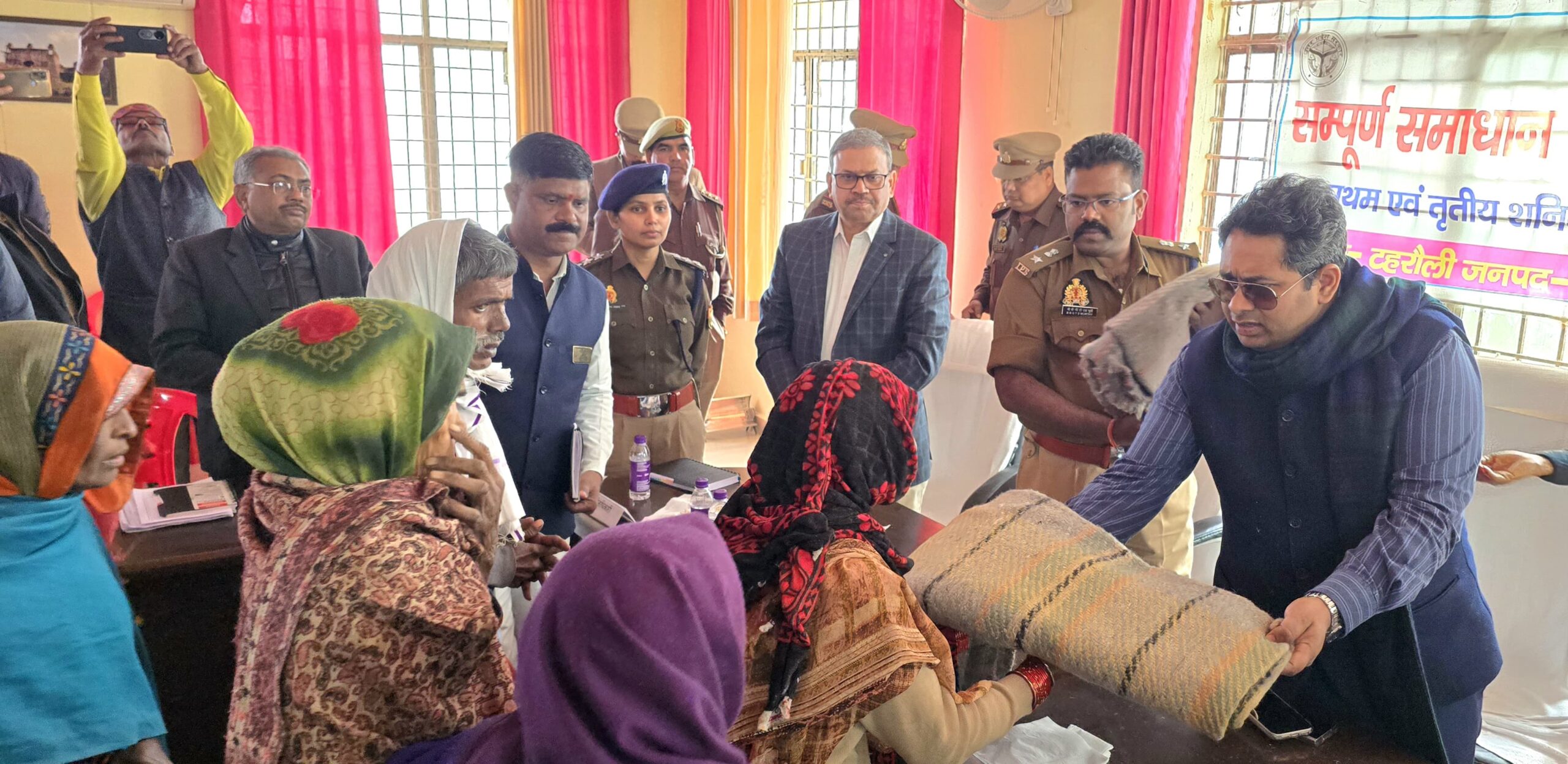 संपूर्ण समाधान दिवस के समापन पर जिलाधिकारी,वरिष्ठ पुलिस अधीक्षक, ज्वाइंट मजिस्ट्रेट एवं मुख्य चिकित्साधिकारी एवं उपजिलाधिकारी तहसीलदार ने मौके पर गरीब,असहाय, निर्बल वृद्धजनों को ठंड से बचाव हेतु कंबल वितरित किए।