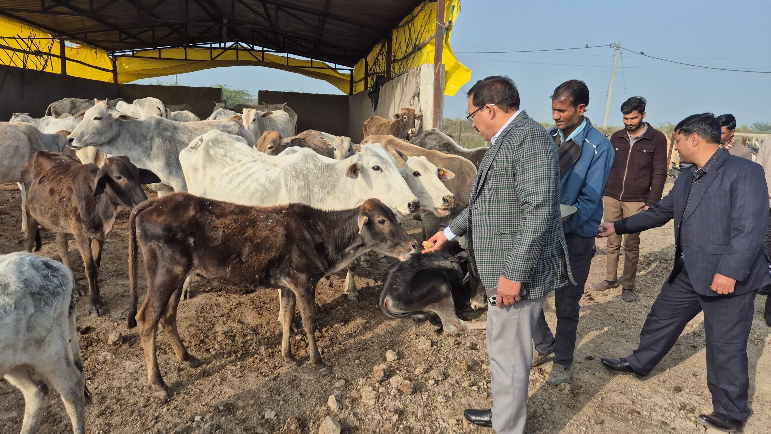 जालौन :० जिलाधिकारी राजेश कुमार पाण्डेय ने विकासखंड डकोर के ग्राम नुनसाईं स्थित गौशाला का निरीक्षण कर गौवंश संरक्षण के प्रति प्रशासन की संवेदनशीलता और प्रतिबद्धता का परिचय दिया। इस दौरान उन्होंने ठंड से बचाव के लिए गौवंशों को काऊ कोट पहनाए तथा स्नेहपूर्वक गुड़ खिलाकर उनके स्वास्थ्य एवं पोषण की जानकारी ली। निरीक्षण के समय जिलाधिकारी ने गौशाला में उपलब्ध चारा, पेयजल, साफ-सफाई और शीतलहर से बचाव की व्यवस्थाओं का बारीकी से जायजा लिया। उन्होंने संबंधित अधिकारियों को स्पष्ट निर्देश दिए कि गौवंशों की देखभाल में किसी भी प्रकार की लापरवाही न बरती जाए। जिलाधिकारी ने कहा कि गौवंश संरक्षण शासन की प्राथमिकताओं में शामिल है, इसलिए सभी गौशालाओं में शासन द्वारा निर्धारित मानकों के अनुरूप व्यवस्थाएं सुनिश्चित की जाएं। उन्होंने गौशाला प्रबंधन समिति को निर्देशित किया कि नियमित निरीक्षण कर गौवंशों के स्वास्थ्य की निरंतर निगरानी की जाए तथा शीतलहर को देखते हुए सभी आवश्यक इंतजाम समय रहते पूरे किए जाएं, जिससे गौवंश सुरक्षित एवं स्वस्थ रह सकें।