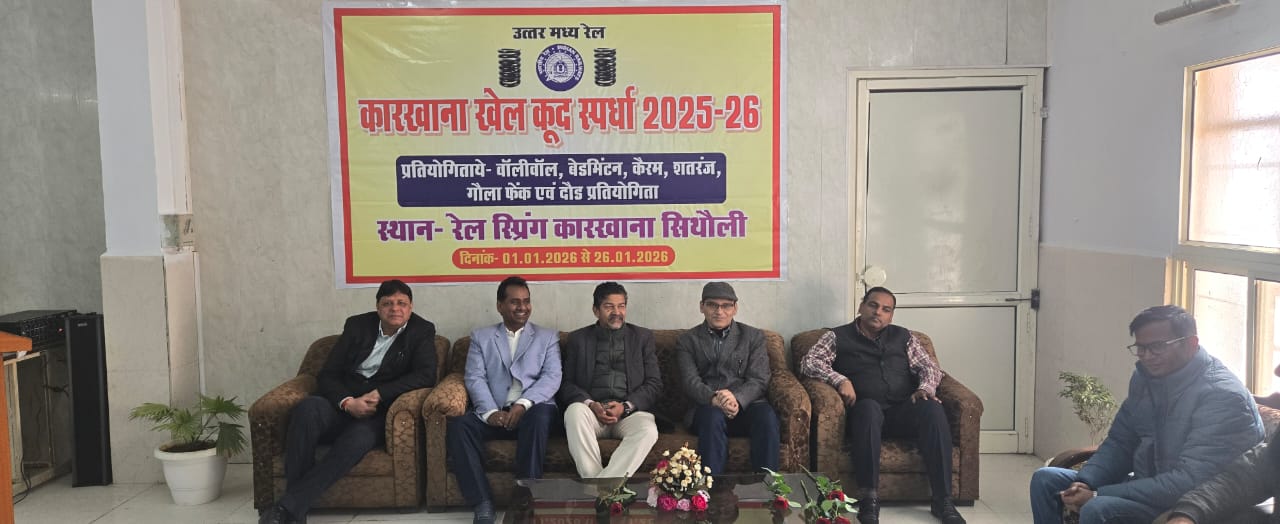 आज दिनांक 07.01.2026 को रेल स्प्रिंग कारखाना, सिथौली में मुख्य कारखाना प्रबंधक श्री शिवाजी कदम के मार्ग दर्शन में खेल-कूद स्पर्धा 2025-26 का आयोजन बहुत ही उल्लास के साथ शुभारम्भ हुआ, इस अवसर पर ग्वालियर में पदस्थ डिवीजन के अधिकारी भी उपस्थित रहे।