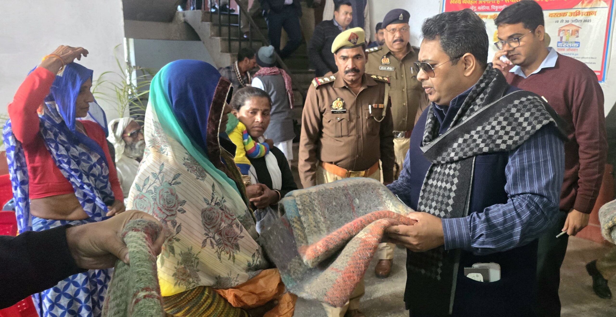 ** जिलाधिकारी ने संपूर्ण समाधान दिवस के अवसर पर गरीब,असहाय बृद्ध महिलाओं को ठंड से बचाव हेतु कंबल वितरित किए