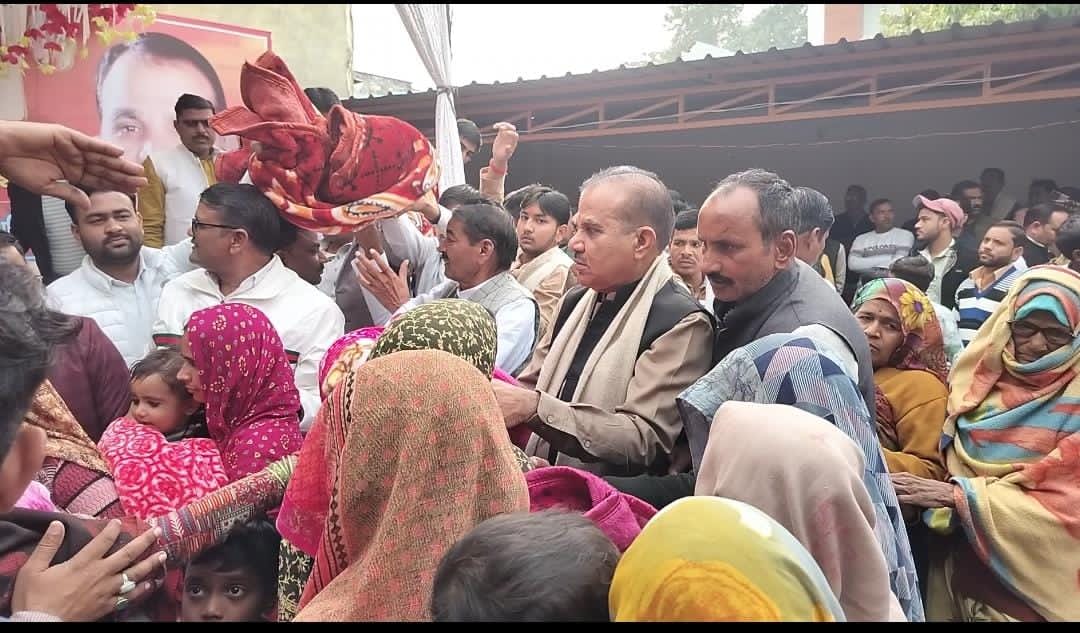 पूँछ (झाँसी)। कड़ाके की ठंड से जूझ रहे गरीब एवं असहाय लोगों को राहत पहुँचाने के उद्देश्य से कस्बा पूँछ में शनिवार, 24 जनवरी 2026 को कंबल वितरण कार्यक्रम का आयोजन किया गया। यह कार्यक्रम समाजसेवी मुकेश यादव के जन्मदिन के शुभ अवसर पर आयोजित हुआ, जिसमें बड़ी संख्या में ग्रामीणों की सहभागिता देखने को मिली। कार्यक्रम में मुख्य अतिथि के रूप में डॉ. चंद्रपाल सिंह यादव (पूर्व राज्यसभा सांसद एवं चेयरमैन, ICA) उपस्थित रहे। अपने संबोधन में उन्होंने कहा कि “जरूरतमंदों की सहायता करना सबसे बड़ा पुण्य कार्य है। समाज के प्रत्येक सक्षम व्यक्ति को आगे आकर गरीब व असहाय लोगों की मदद करनी चाहिए।” कार्यक्रम के दौरान जरूरतमंद लोगों को कंबल वितरित किए गए, जिससे उन्हें भीषण ठंड से काफी राहत मिली। इसी अवसर पर डॉ. चंद्रपाल सिंह यादव ने समाजसेवी मुकेश यादव का केक काटकर जन्मदिन मनाया एवं उन्हें शुभकामनाएं दीं। उपस्थित जनसमूह ने भी हर्षोल्लास के साथ जन्मदिन समारोह में सहभागिता निभाई। कार्यक्रम में भजन गायक राजेंद्र सिंह गुर्जर एवं रानी कुशवाहा द्वारा प्रस्तुत भजनों ने पूरे वातावरण को भक्तिमय बना दिया। कंबल वितरण कार्यक्रम में पधारे सभी अतिथियों एवं ग्रामवासियों का आयोजकों द्वारा हार्दिक स्वागत एवं अभिनंदन किया गया। इस अवसर पर पत्रकार बंधुओं का भी डॉ. चंद्रपाल सिंह यादव द्वारा शाल एवं श्रीफल भेंटकर सम्मान किया गया। कार्यक्रम को सफल बनाने में स्थानीय युवाओं एवं ग्रामीणों का विशेष योगदान रहा। उपस्थित लोगों ने समाजसेवी मुकेश यादव द्वारा किए जा रहे जनसेवा कार्यों की भूरि-भूरि प्रशंसा की।